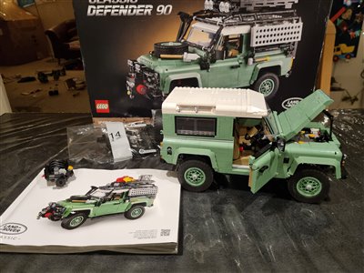 Lego Land rover defender inkl kasse, instruks og alle dele. Er samlet og der er den del ekstras så man kan sætte tagbagagebær og udstyr på. Kan afhentes i Kolding eller Vejle efter aftale. Ellers kan den sendes.